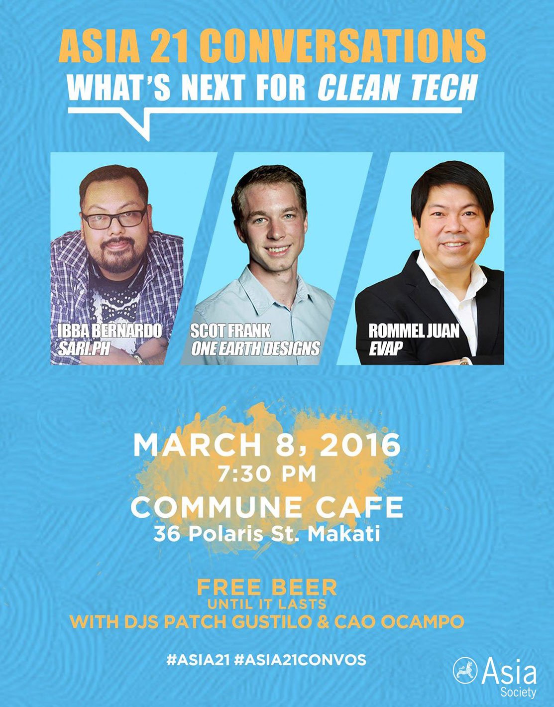 Also happening tomorrow! Join us for a night of open conversations with Asia Society’s Asia 21 Young Leaders Scot Frank and Rommel Juan, two special innovators in the clean technology space. They will talk about their personal stories, motivations and advocacies as well as the latest trends in tech and innovation.