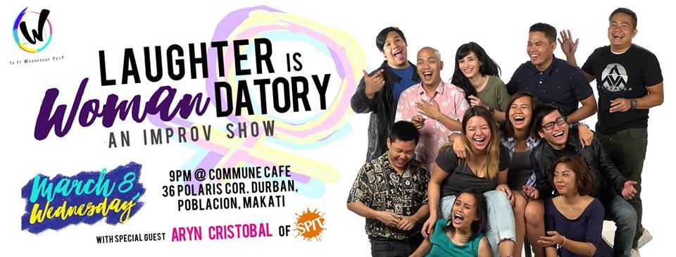 What’s up on March 8? Yes, it’s a Wednesday! AND, it’s International Women’s Day! @isitwednesdayyet ccelebrates the women we love and admire with improv comedy! Featuring one of the most awesome women we know, Aryn Cristobal of SPIT! See you this Wednesday, 9pm! PHP 250 entrance with free drink. Bring your suggestions, good vibes and sense of empowerment!