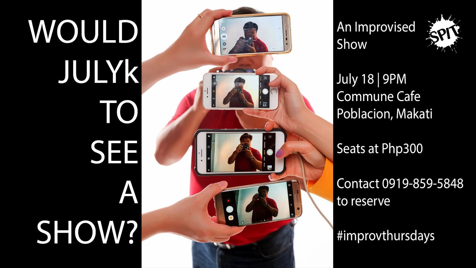 Join us this July 18, Thursday, 9pm. PHP 300 door charge comes with a free drink. Contact 0919 859 5848 to reserve your seats. #CommunePH# ItStartsWithCoffee #improvthursdays