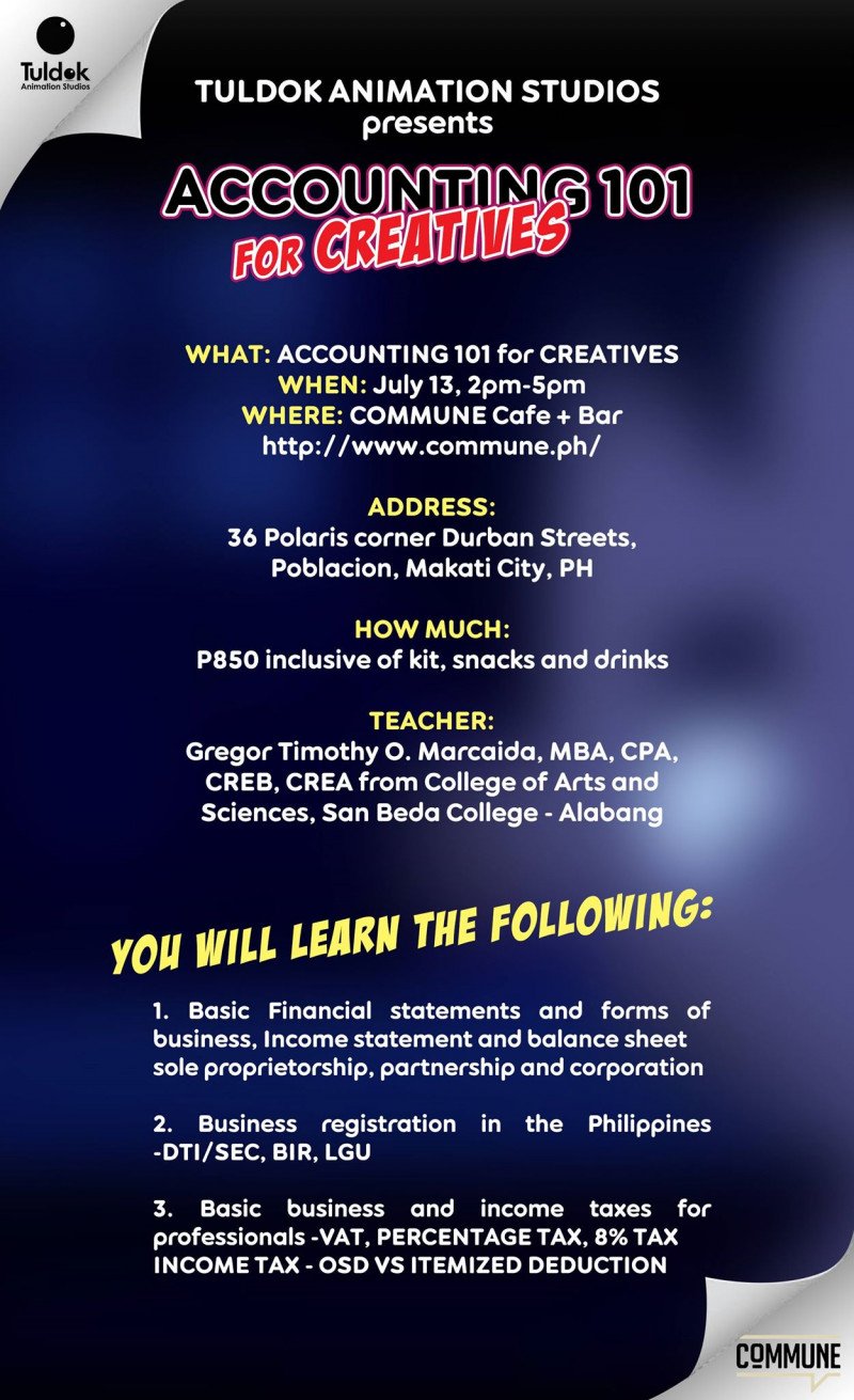 TEACHER: Gregor Timothy O. Marcaida, MBA, CPA, CREB, CREA from College of Arts and Sciences, San Beda College - Alabang You will learn the following: 1. Basic Financial statements and forms of business, Income statement and balance sheet sole proprietorship, partnership and corporation 2. Business registration in the philippines -dti/sec, bir, lgu 3. Basic business […]