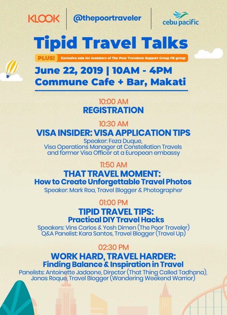 TIPID TRAVEL TALKS is a series of free travel workshops where thepoortraveler shares some of their most useful travel hacks — from visa applications to planning to the actual travel.